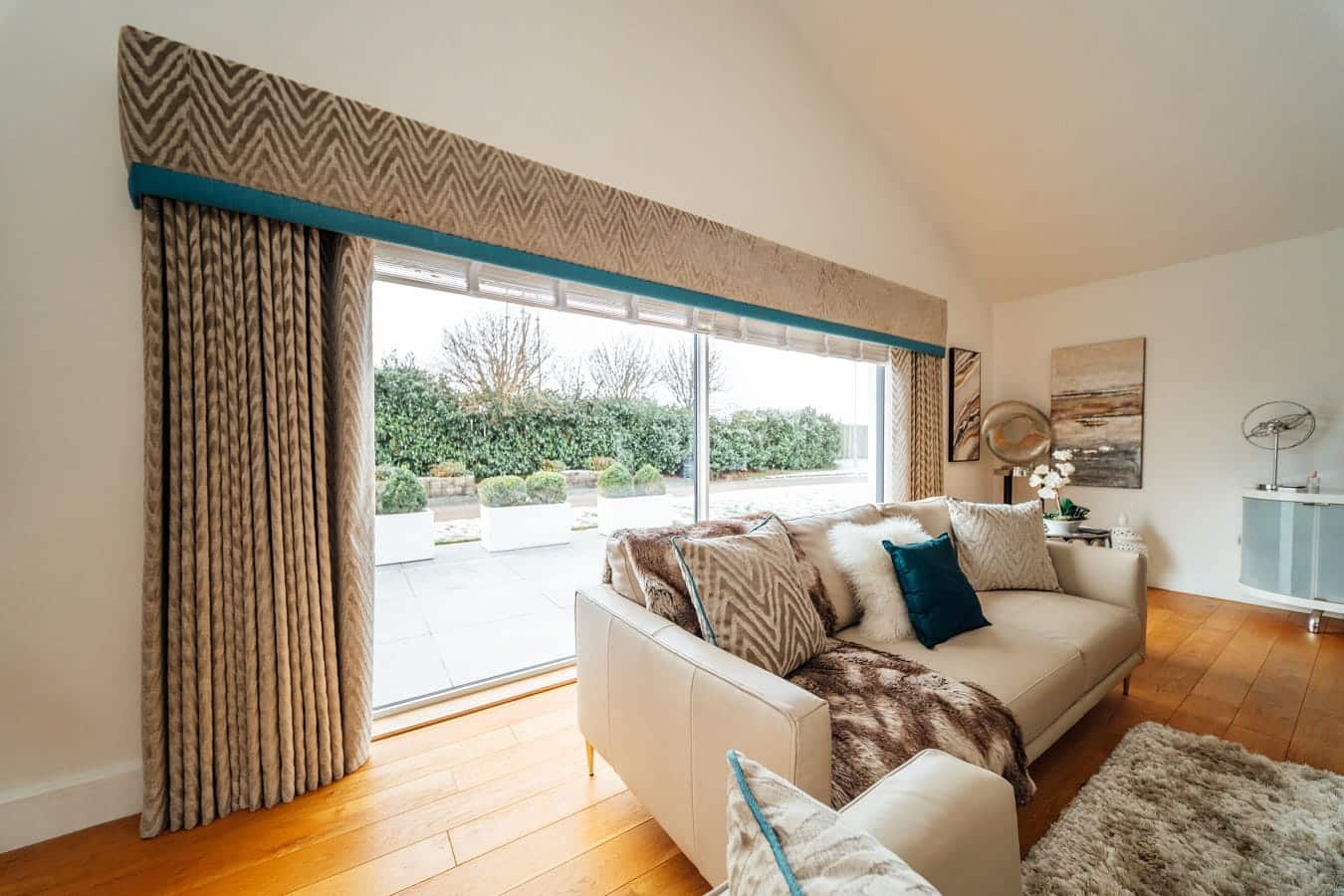 Three lift and slide patio doors were installed to the rear of the property, featuring ultra-slim 35mm sightlines designed to maximise glass area and natural light.