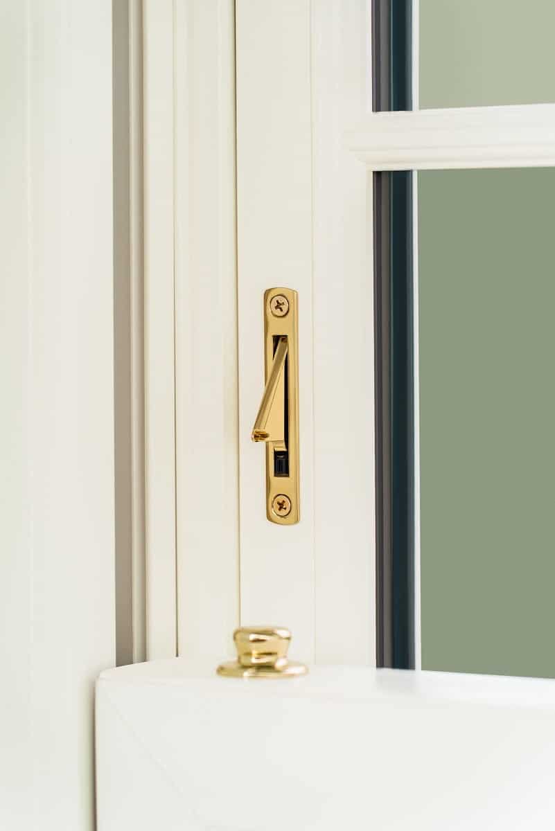 - Gold cam locks, sash lifts, and pole eyes