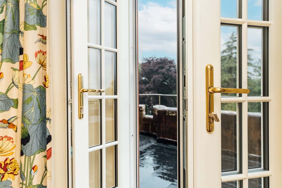 Manufactured with the same white woodgrain finish and astragal bar detailing, these doors combine traditional styling with modern performance. All doors were fitted with high-efficiency toughened glazing and premium gold hardware to match the sash windows.